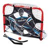 1 goal with shooter tutor, 2 pre-curved plastic mini sticks, 1 foam ball Net measures 30.5" X23" X 13.5" when assembled