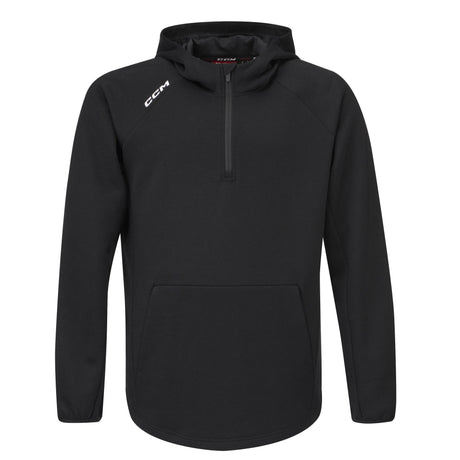 Premium ¼ zip tech fleece combines a light-weight insulator with a premium look and construction built to travel on and off the bus to the rink and gym featuring front pockets and brushed jersey lined hood.