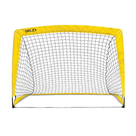 The SKLZ Youth Soccer Net is the ideal net for pick-up games or training target during drills. Featuring a lightweight yet sturdy fiberglass fame and durable net, your team will be able to practice and play season after season. With an authentic shape, players can visualize shots during drills and practice to improve game time performance. The 4’ x 3’ goal makes it easy to practice anywhere -- the net sets up and fold away easily and quickly, ideal for indoor or outdoor pick-up games or practice drills. Includes spikes for anchoring into the ground and a carrying bag.