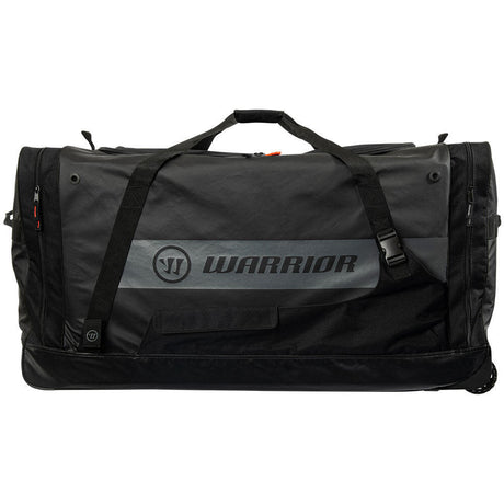 The Warrior Ritual Goalie Roller Bag is built to fit all protective gear and goal pads, combining premium materials for durability. It features a strong roller base with 390mm all-terrain wheels, a durable handle, and thick rubber corners for added protection. A large U-shaped top opening and multiple pockets, including a stick sling, end skate pocket, and valuables pocket, keep gear organized. Reinforced straps, plastic vent grommets, and a Uni Grip handle enhance convenience. Available now at Source For Sports.