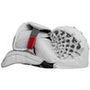 Next you want to ensure the adjustable wrist strap goes directly across the wrist bone, and has minimal to no interference with your chest protector. The goaltender should be able to swivel their wrist to accommodate a range of save selections without any restrictions from the chest protector.